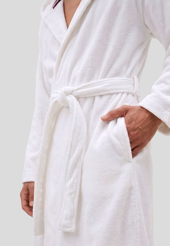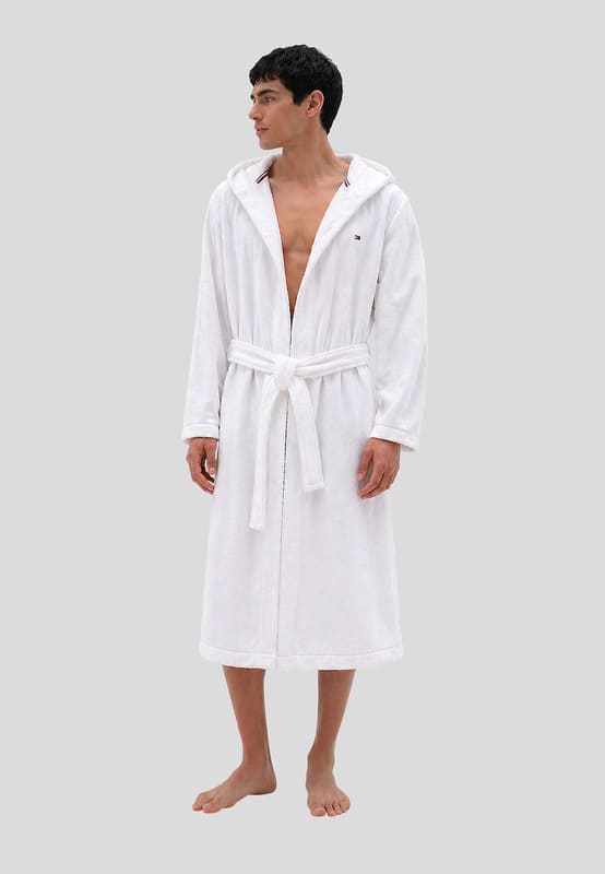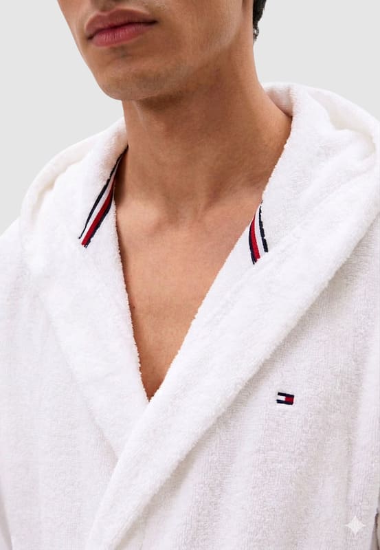 Disfruta del máximo confort con este albornoz para hombre de Tommy Hilfiger en color blanco, diseñado para ofrecer una experiencia premium tras la ducha o el baño.