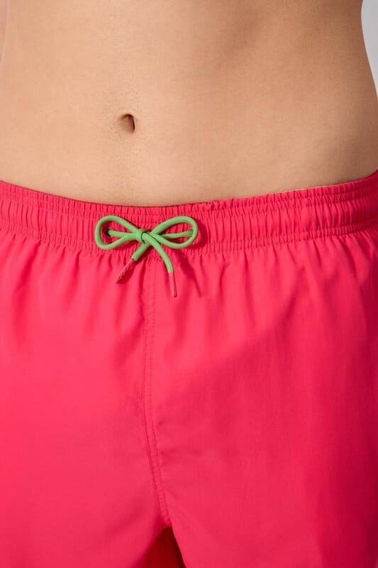 Bañador de corte clásico, de pierna media liso en fucsia. Al tacto es un tejido muy suave, ligero y de secado rápido.