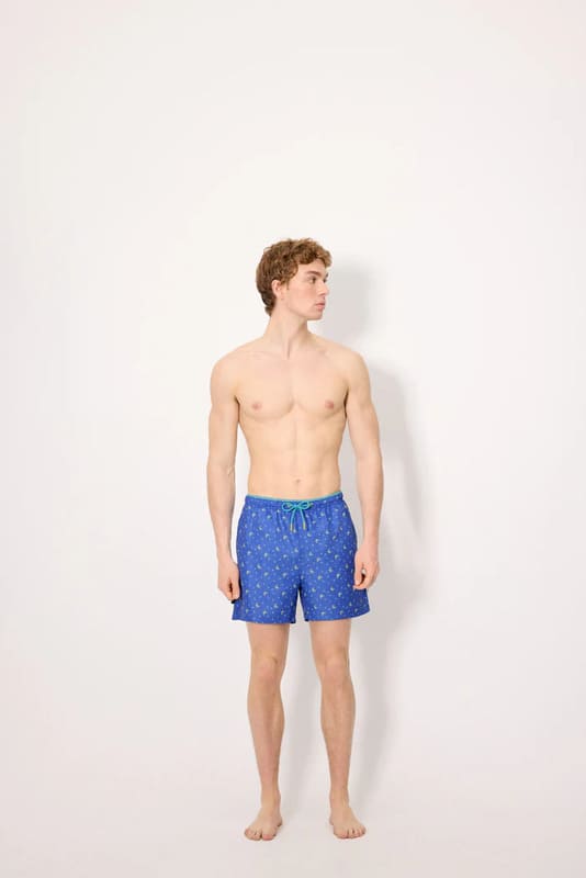 El bañador de hombre Ysabel Mora con estampado de cangrejos es una opción perfecta para quienes buscan un estilo veraniego, original y funcional. Con su diseño de largo medio, ofrece un ajuste cómodo y versátil, ideal para disfrutar tanto en la playa como en la piscina.