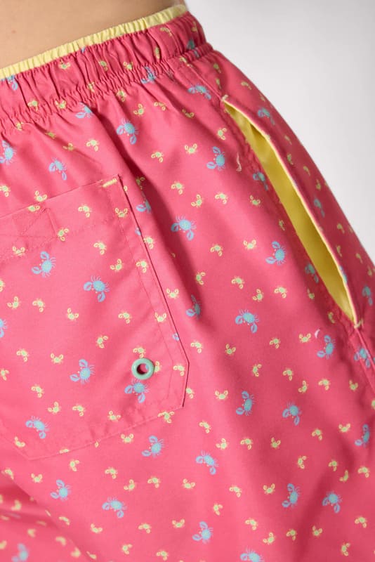 Confeccionado en tejido ligero de secado rápido, y estampado contrastado de cangrejos garantiza frescura y confort tanto dentro como fuera del agua. Incorpora cintura elástica con cordón ajustable para un ajuste seguro, además de bolsillos funcionales que aportan practicidad.Incorpora uno más en la parte trasera cerrado con velcro.
