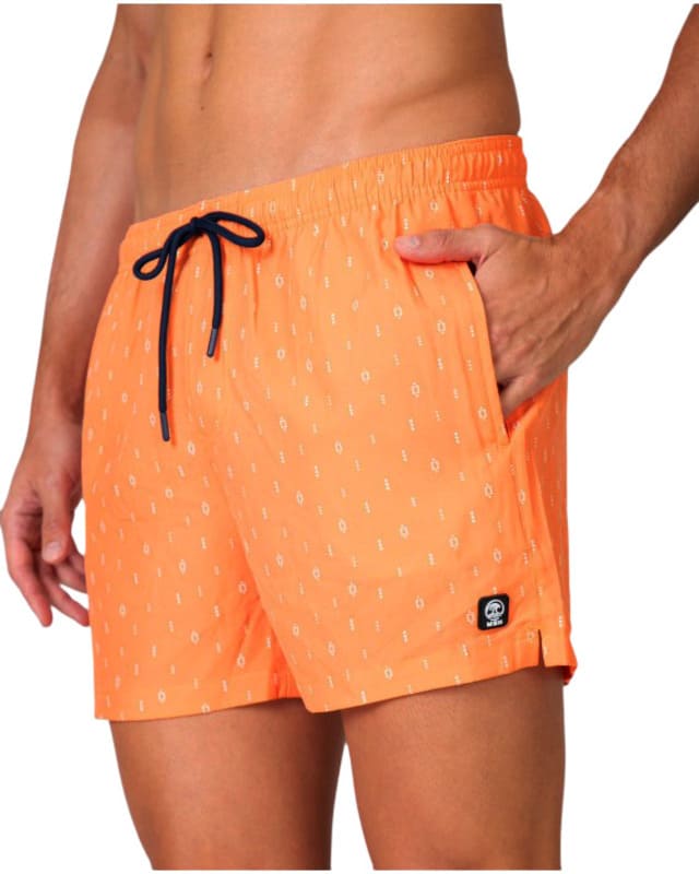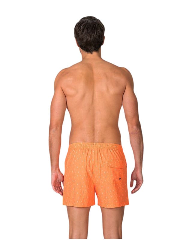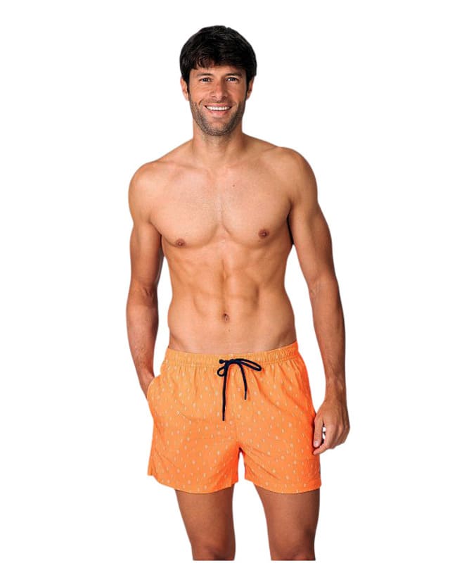 El bañador de hombre Massana en color naranja con microestampado es perfecto para quienes buscan un estilo actual, llamativo y cómodo durante el verano. Confeccionado en tejido de secado rápido, ofrece ligereza y confort tanto dentro como fuera del agua.
