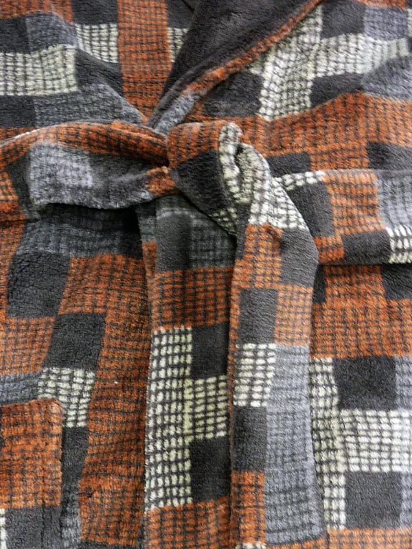 De corte clásico, cuello smoking, larga hasta las rodillas, cruzada y cerrada con cinturón. Éste modelo no incluye una cinta interior para que no se abra.