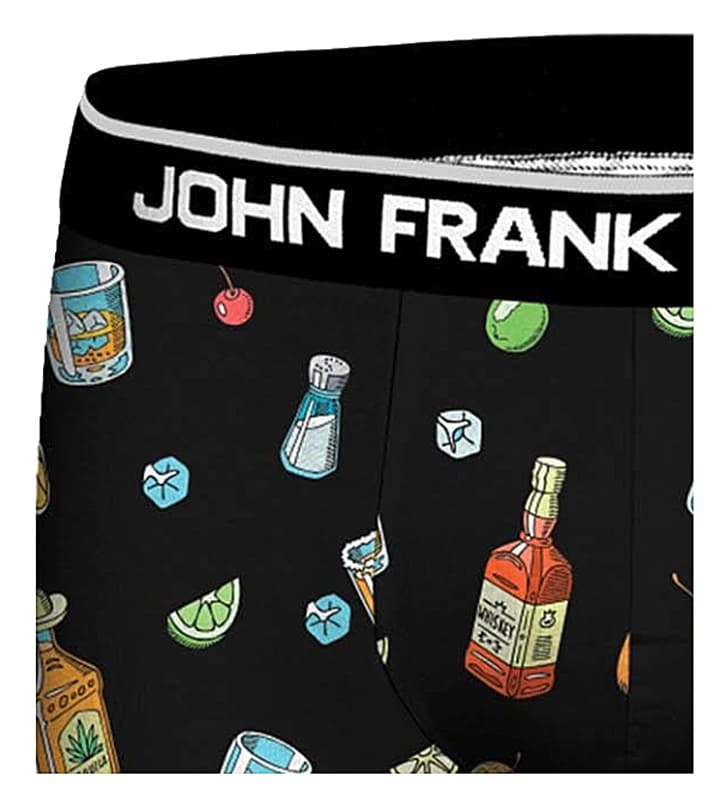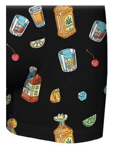 Nuevo modelo de ropa interior con estampado inspirado en icónicas botellas de bebidas alcohólicas: whisky escocés, tequila, vodka, ron... perfectamente contrastadas sobre el fondo en negro de la prenda.