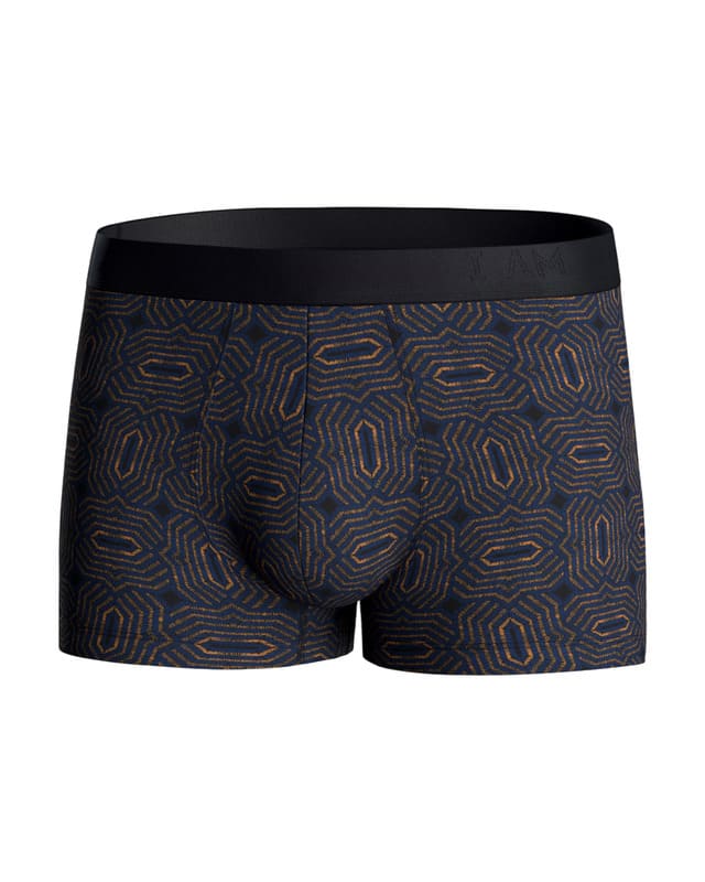 Calzoncillo con estampado geométrico en naranja sobre fondo en azul océano.