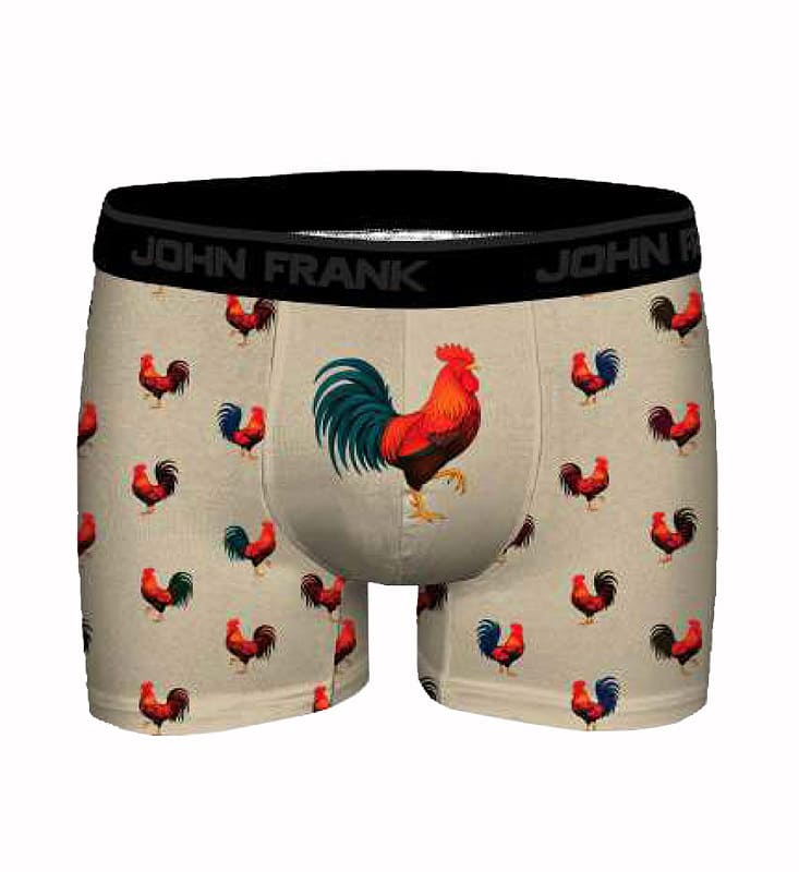 Presenta un estampado dinámico de gallos en vivos colores, representados en diferentes situaciones, sobre fondo azul marino, creando un diseño alegre, moderno y lleno de personalidad.