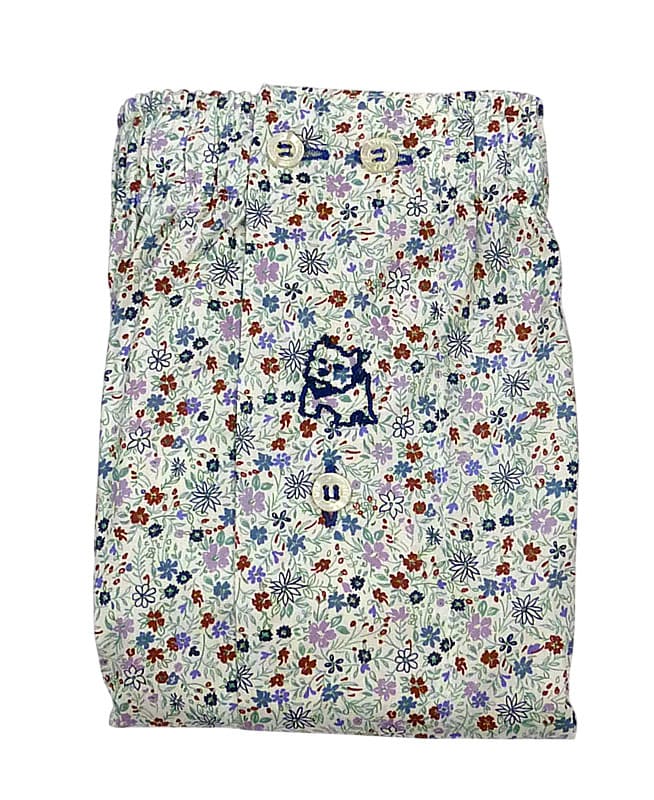 Nuevo modelo de estilo clásico confeccionado en algodón popelín 100%. El calzoncillo es de color azul grisáceo y presenta un original y divertido estampado de flores. Las figuras contrastan de forma discreta con el tono de base, aportando un acabado más juvenil e informal a la prenda.