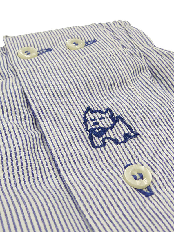 Incorpora bragueta con cierre de botón, doble botón en la cinturilla para un mejor ajuste y el característico logo del perrito bordado en el frontal, sello distintivo de la marca.