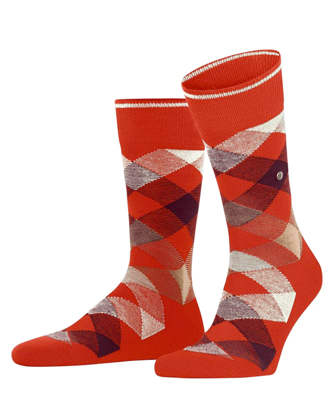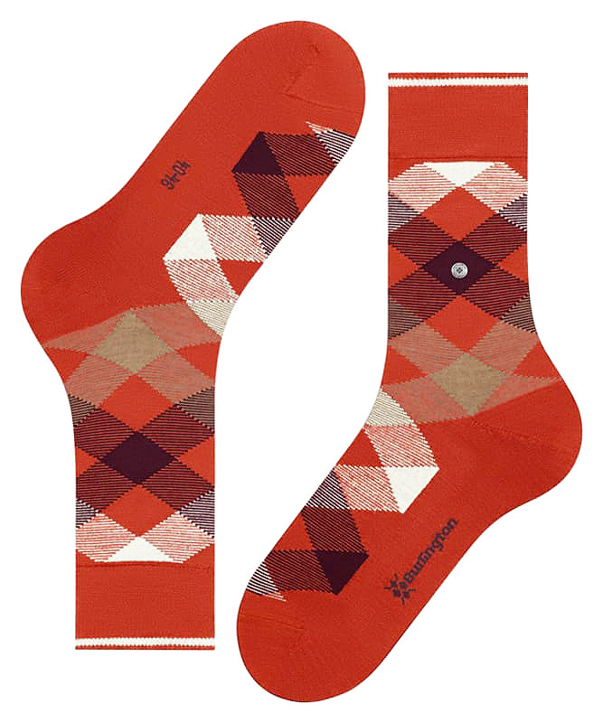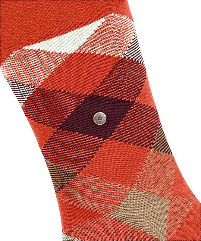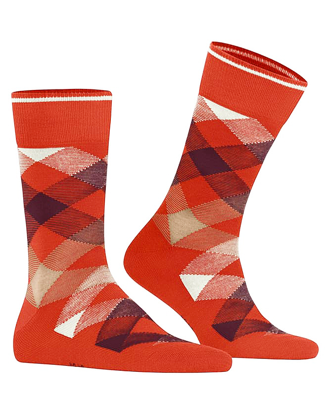 Los calcetines Burlington presentan un diseño de rombos miniaturizados con una base en naranja coral y degradados en tonos claros, que aportan luminosidad y un toque contemporáneo.