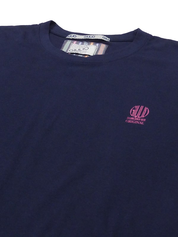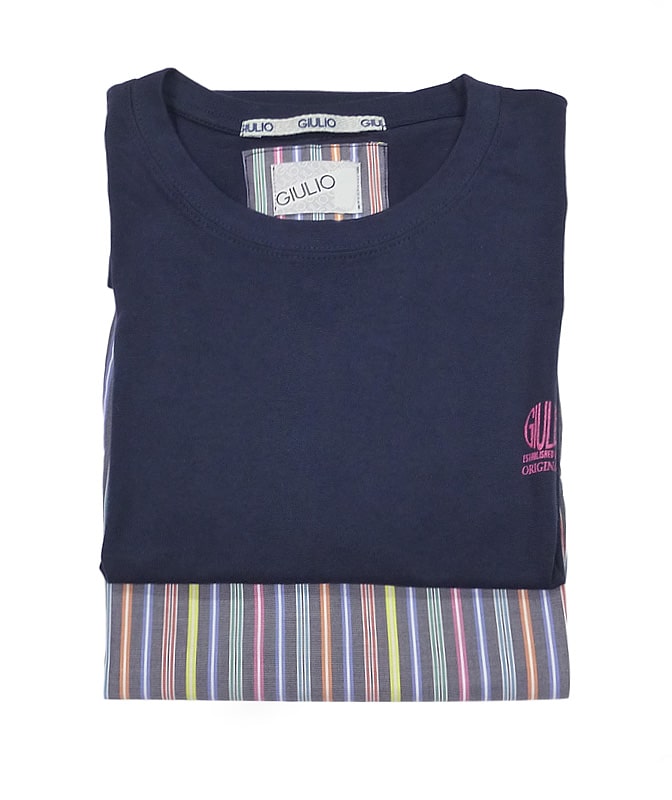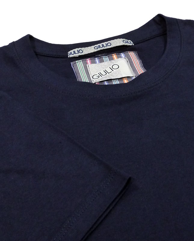 Camiseta en punto de algodón lisa, en tono azul marino. Cuello redondo no muy escotado y logo de Giulio termosellados en el pecho.
