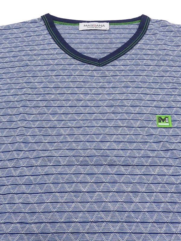 Pijama con un nuevo acabado más informal, tipo triangular con rayas finitas en diferentes tonos de azul combinadas. De manga corta y pantalón tipo bermuda, perfecto para los meses más cálidos del año. Confeccionado en algodón y poliéster que lo hacen todavía más suave al tacto.
