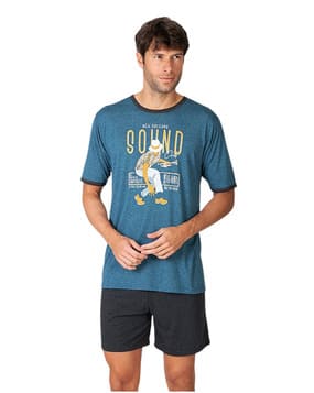 El pijama corto de hombre Massana con camiseta estampada es perfecto para quienes buscan comodidad, frescura y estilo actual durante el verano. Confeccionado en tejido de punto con viscosa, ofrece un tacto extra suave y ligero, ideal para el descanso diario.