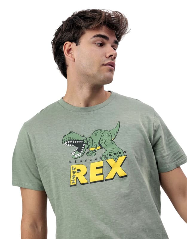 La camiseta de manga corta presenta tejido slub con detalles en relieve que aportan textura y personalidad. Las letras en grande y contrastadas en amarillo le aportan un extra de estilo llamativo y carácter desenfadado, reforzando su estética divertida inspirada en Toy Story.