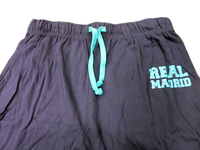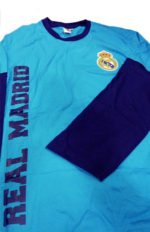 Pijama en color azul del Real Madrid C. F. en punto de algodón, nada grueso, para un uso continuado de todo el año.