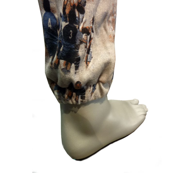 El pantalón cierra con elástico en los tobillos.