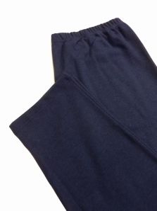 Pantalón liso, en color azul con cinturilla elástica forrada a juego. No tiene cordón ceñidor ni bolsillos laterales. Tampoco es tan grueso como la camiseta.