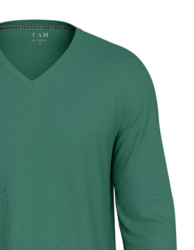 Camiseta de manga larga lisa, en un nuevo color verde y acabado en cuello pico.