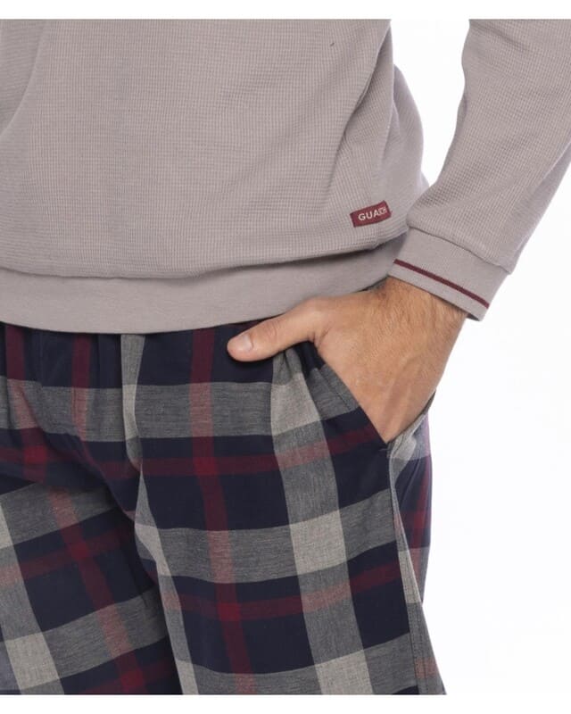 El pantalón es de viyela, tacto muy agradable y que le da ese extra de calidez, que no tiene la tela. Combina cuadros en azul y granate. Cinturilla forrada a juego con cierre de botón y bragueta para mayor comodidad. Cuenta con un cordón ceñidor para un ajuste perfecto y prácticos bolsillos laterales.