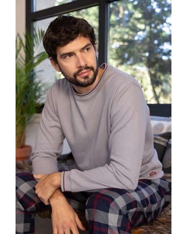 ¡Descubre la prenda que transformará tus noches! Este elegante pijama de suave algodón y el pantalón de viyela te ofrecen un lujo incomparable. Su tejido, un poquito más grueso que en los modelos de verano, te envolverá en un abrigo y confort excepcionales. Perfecto para disfrutar de las primeras noches frescas del otoño e invierno.