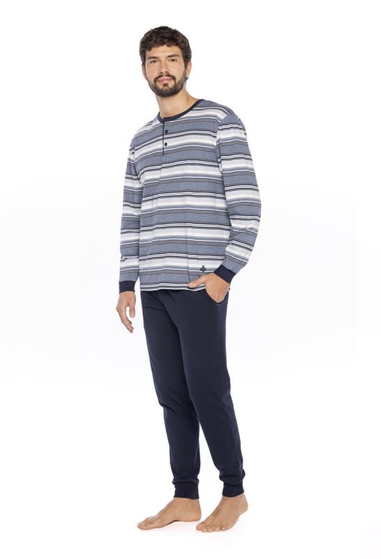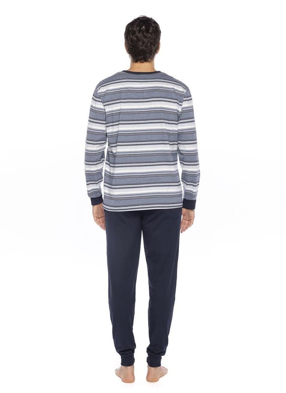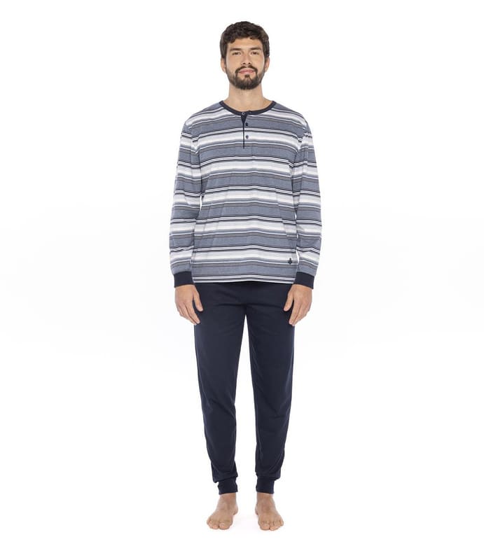 Disfruta de la comodidad atemporal con este elegante pijama de algodón fino. Su composición ligera es perfecta para usar todo el año. Te asegura una sensación suave y transpirable en verano, y la calidez justa cuando las noches refrescan.
