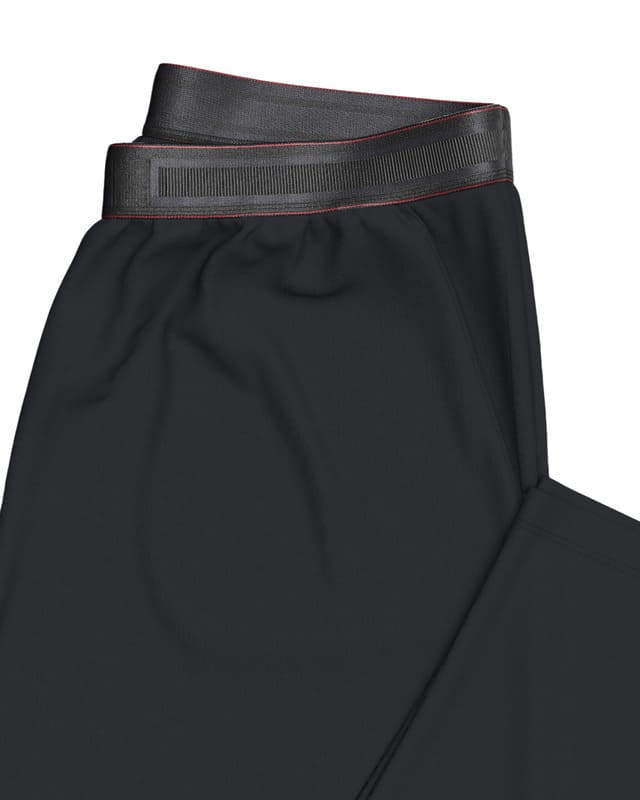Pantalón largo liso contrastado en azul marino. Cuenta con goma vista o cinturilla elástica con vivos en rojo, sin cordón ceñidor pero incluye bolsillos laterales.