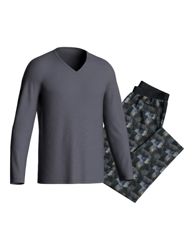 Descubre cómo la innovación también llega a los pijamas de hombre con este modelo confeccionado en punto de doble cara. La capa exterior, en poliéster reciclado, ofrece calidez, resistencia y colores intensos que perduran tras cada lavado. En el interior, el TENCEL™ Modal aporta una suavidad excepcional, un tacto delicado y una comodidad total sobre la piel. Una fusión perfecta de tecnología y confort para disfrutar de un descanso con estilo durante todo el año.