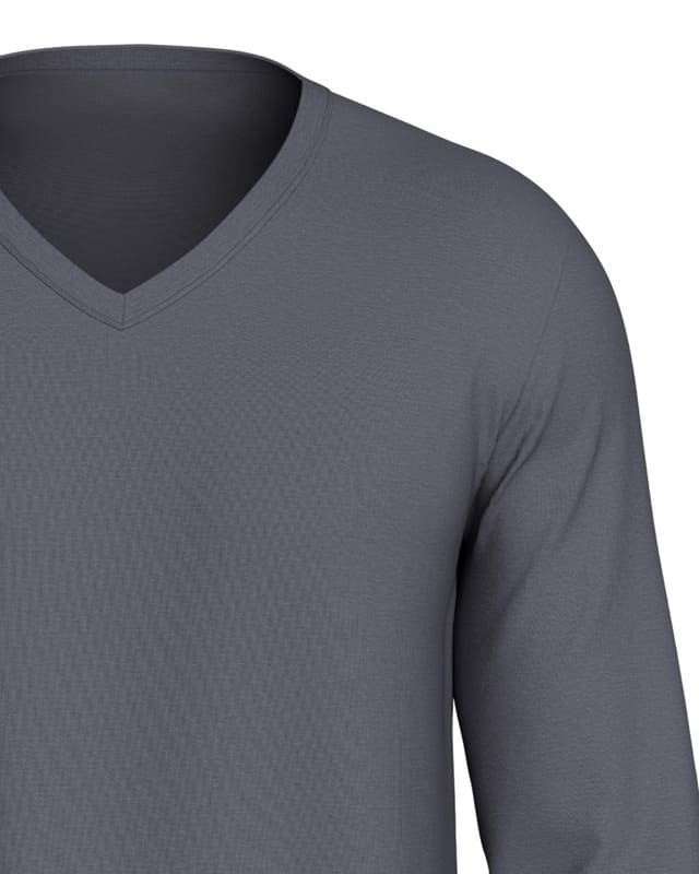Camiseta de manga larga lisa en gris azulado con cuello en pico.