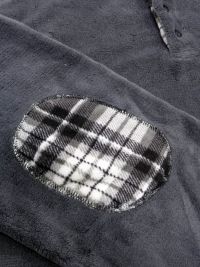 Camiseta de manga larga en color gris oscuro en liso. Cierra en cuello redondo con tapeta y botones para mayor comodidad, coderas y todo ello envivado a cuadros, que combinan con el cuadro del pantalón.