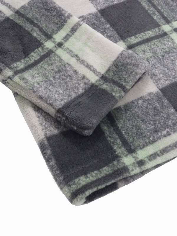 Camiseta de manga larga a cuadros grandes que combinan verde, gris y tonos beige. Cierra en cuello redondo y tapeta con dos botones.