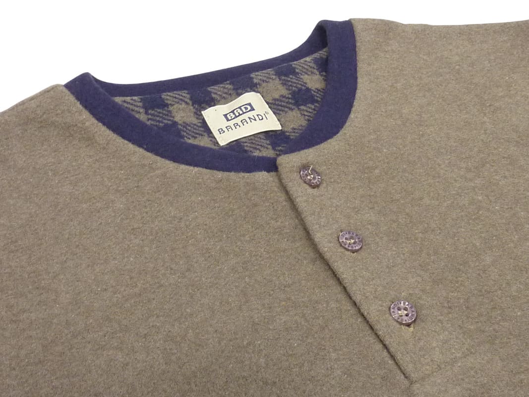 La camiseta es lisa en color marrón. Cuenta con cuello redondo y una tapeta de cierre con tres botones además incluye bolsillo en el pecho y cierra las mangas con puños elásticos en azul marino.