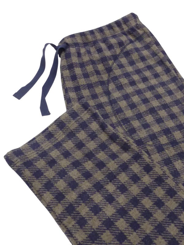El pantalón es a cuadros en tono marrón y en azul marino. Cinturilla elástica forrada con cordón ceñidor e incluye bolsillos laterales.